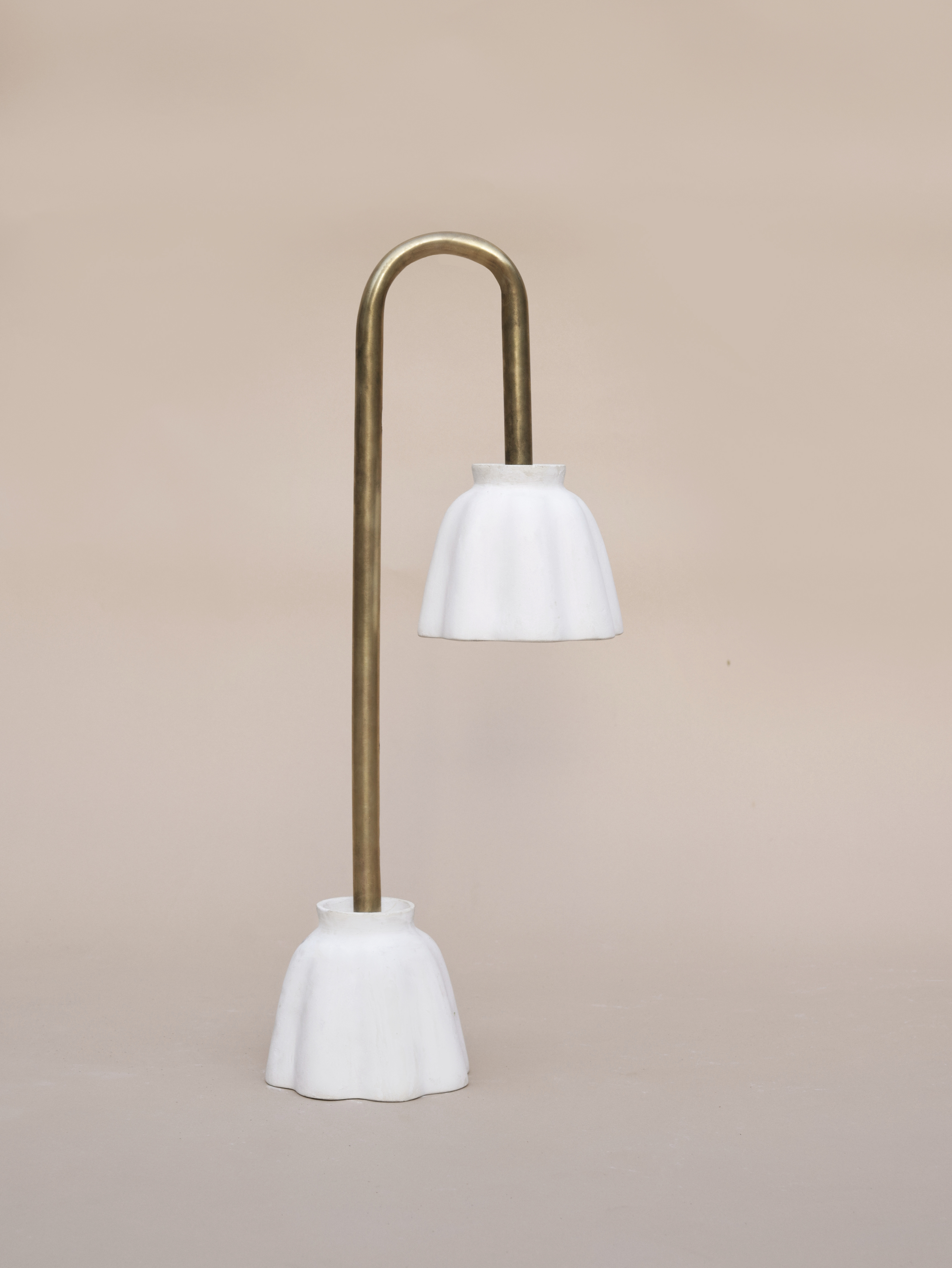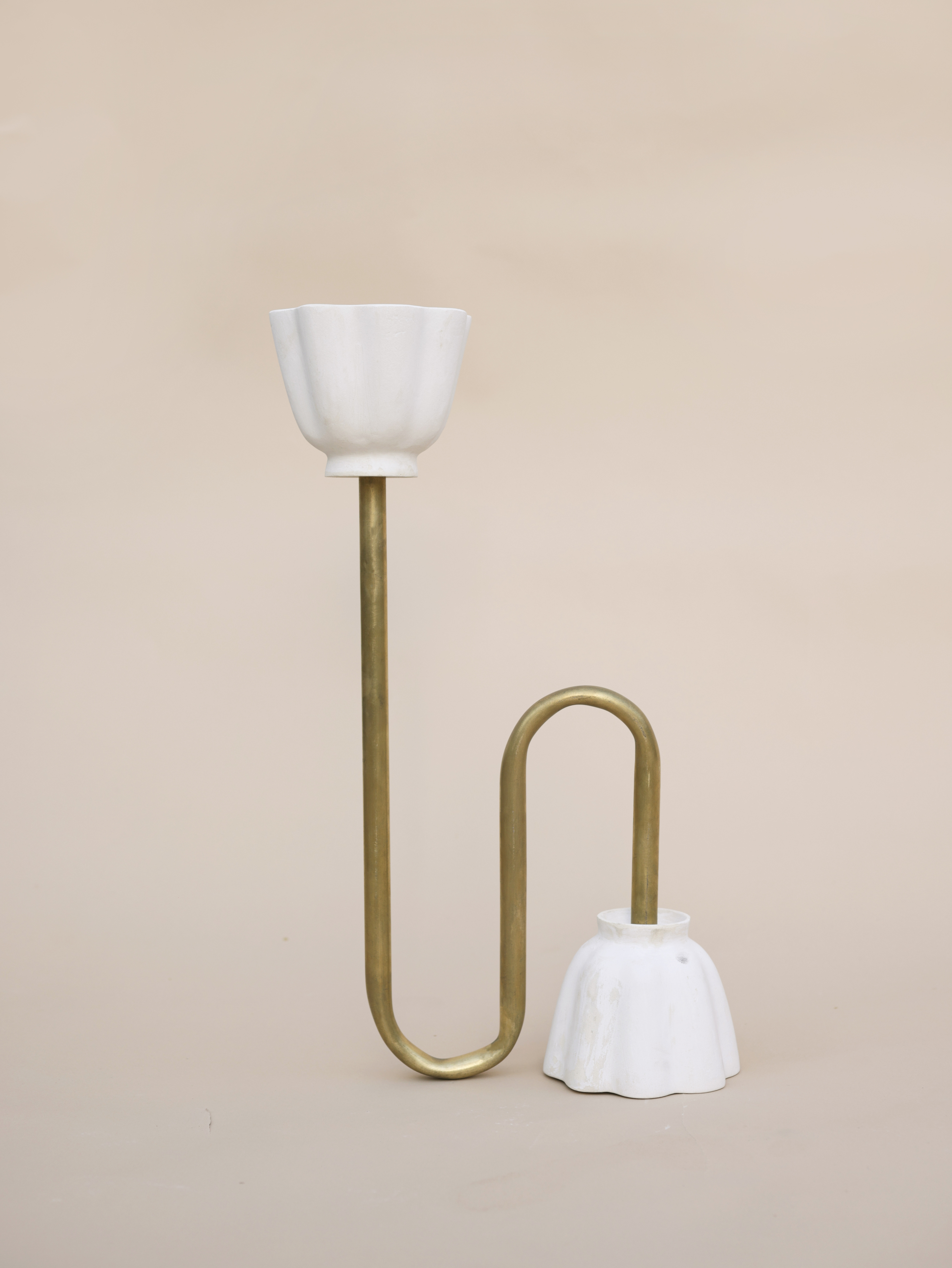 A collaboration between Jaipur Blue Pottery and Thatera Brass Artisans of Jaipur to create a collection of lighting and a bar table.
